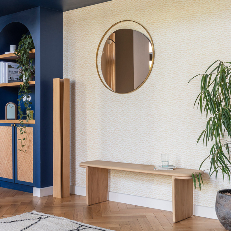 Alliant élégance contemporaine et authenticité du chêne massif français, le banc Téhème trouve facilement sa place dans une entrée, un couloir ou autour d’une table.