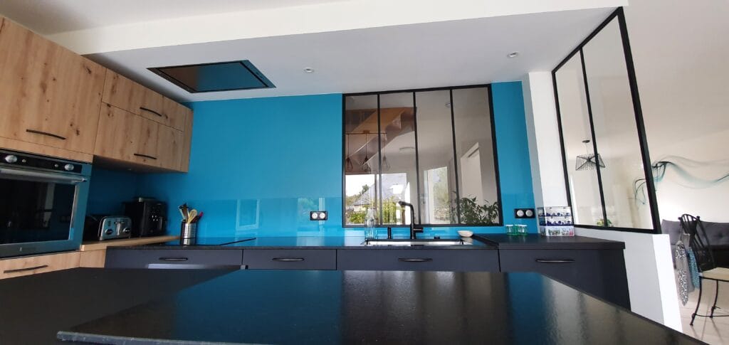 Nous avons installé deux verrières, permettant de rendre la cuisine traversante, et ouverte sur les autres espaces de vie.
