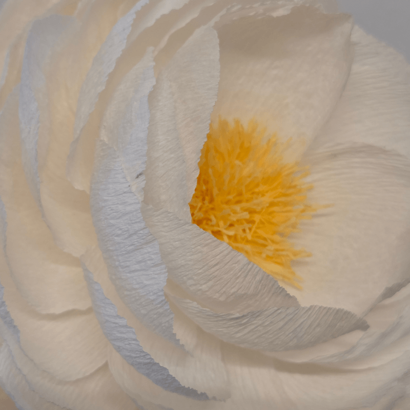 Généreuse et délicate, cette pivoine en papier crépon est entièrement façonnée à la main.