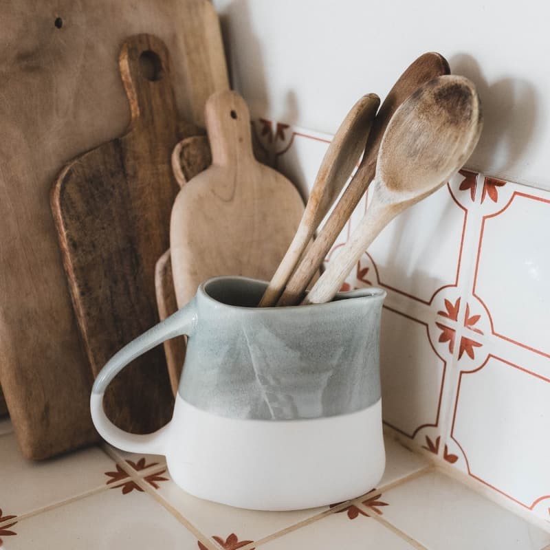 Le pichet Maguelone séduit par ses lignes imparfaites et organiques, empreintes du geste du céramiste. Sa forme douce et arrondie évoque la sensualité de la nature et la poésie des îles méditerranéennes.