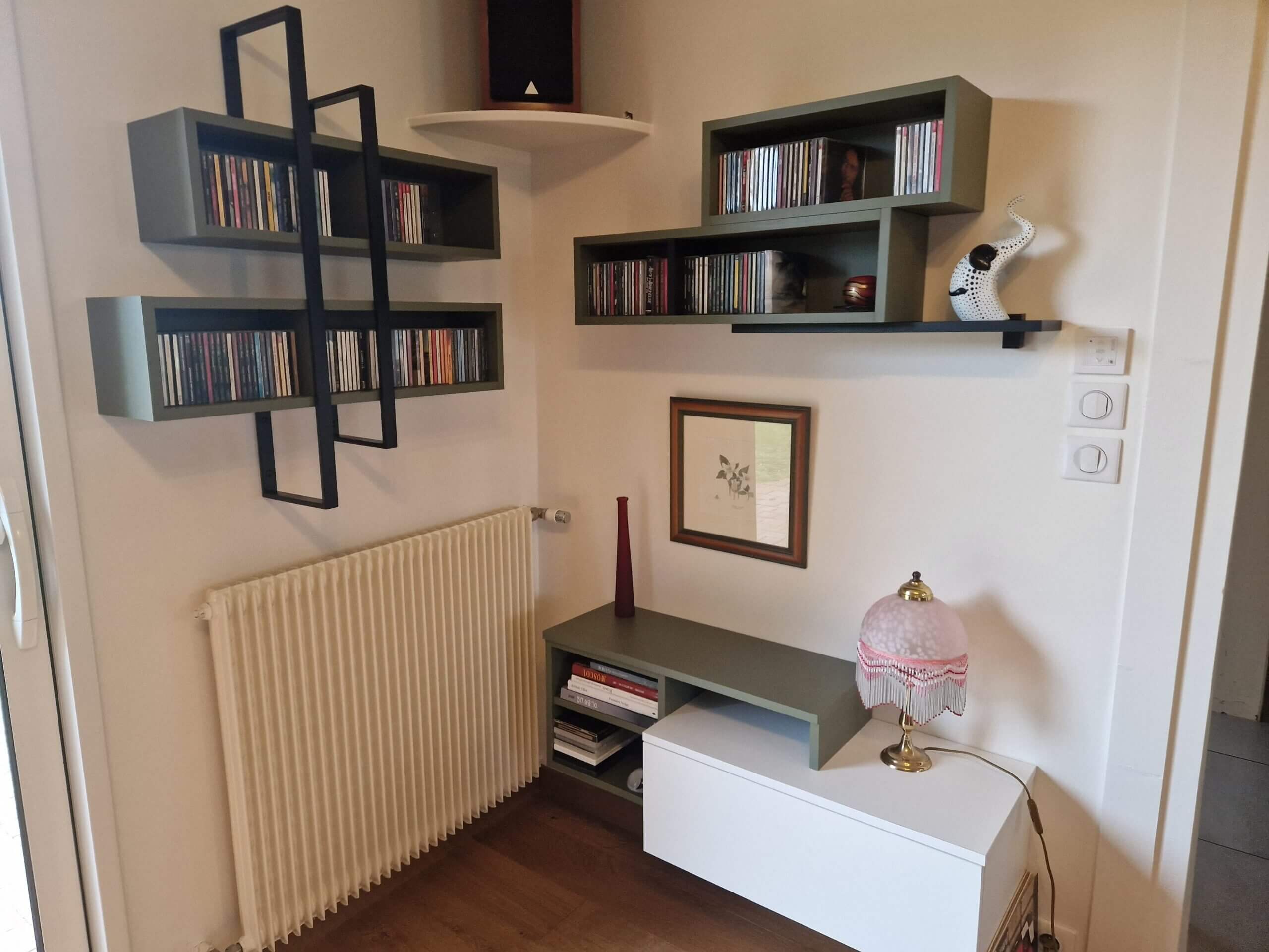 La cliente souhaitait ranger dans son salon ses cd et ses vinyles ainsi que les éléments hifi.